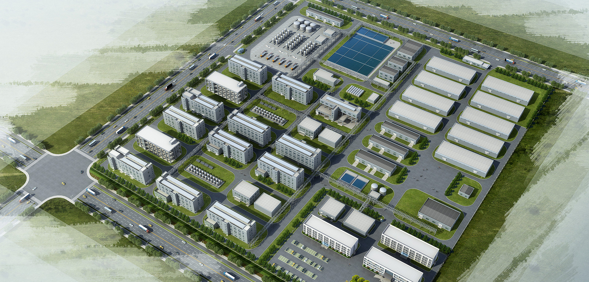 建設(shè)產(chǎn)品生產(chǎn)中心、環(huán)保處理中心、倉儲(chǔ)管理中心、公用工程中心、分析研究中心等區(qū)域
